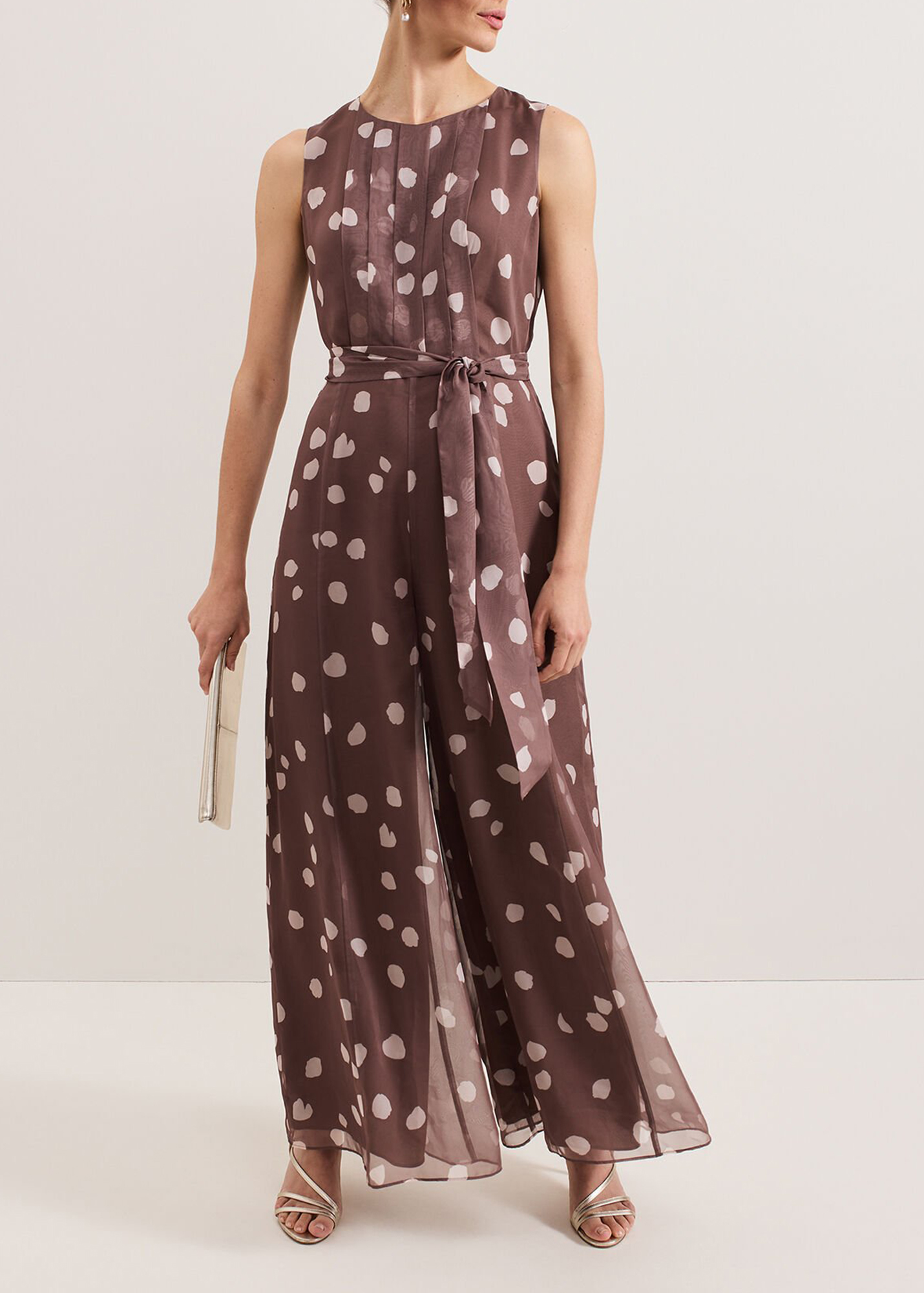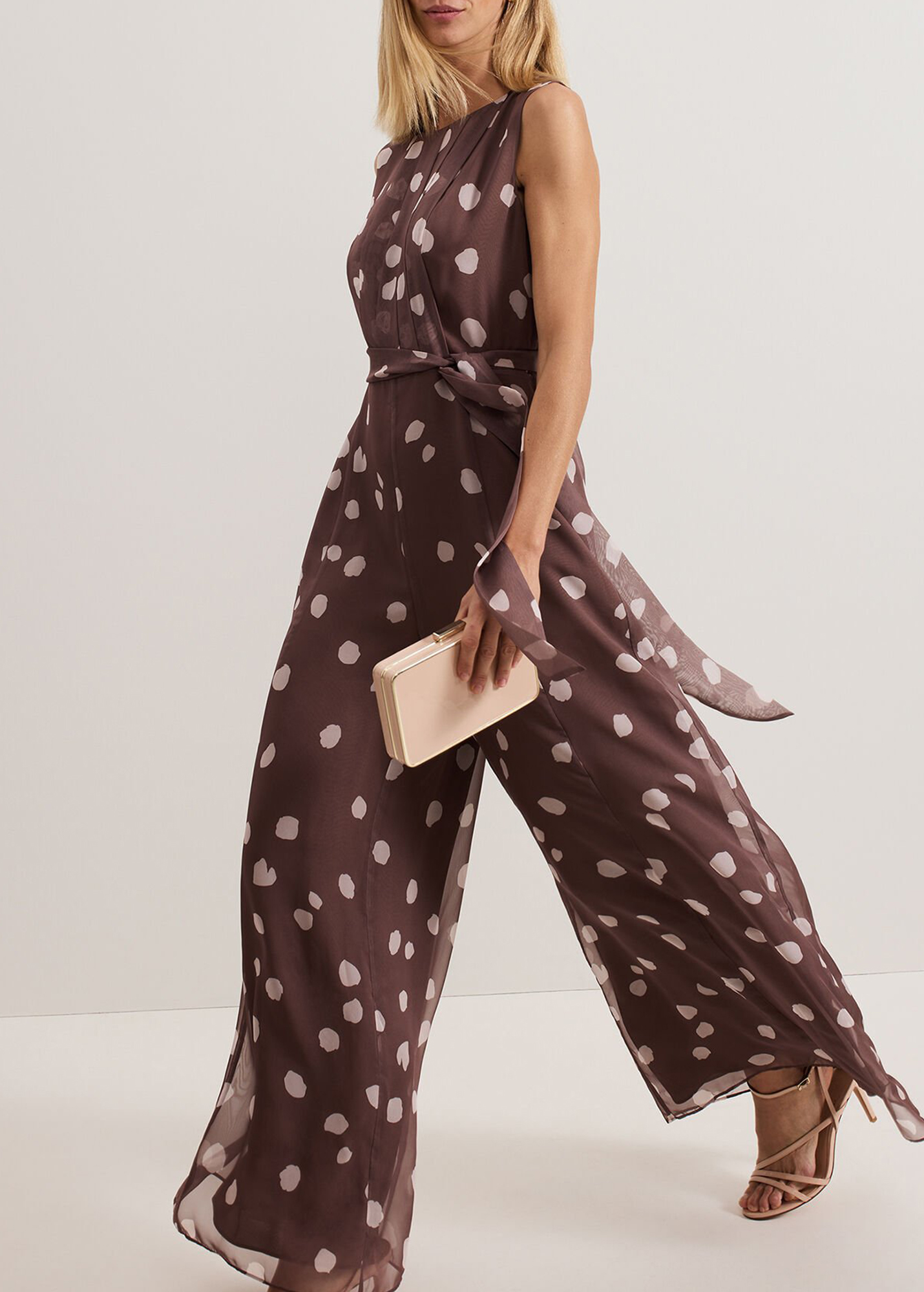 Casual Polka Dot Round Neck Sleeveless Dress